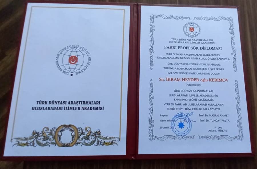 Türk Dünyası Araşdırmaları Beynəlxalq Elmlər Akademiyasının  Elmi Şurasının qərarı ilə Azərbaycanın əməkdar hüquqşünası, tanınmış vəkil İ.Kərimov "Türk dünyasına müstəsna xidmətlərinə və Türkiyə-Azərbaycan qardaşlıq əlaqələrinin inkişafına verdiyi töhfələrə görə" "Fəxri professor" adına layiq görülüb. İ.Kərimov akademiyanın diplomu və “Beynəlxalq qızıl ulduz” medalı ilə təltif edilib. O, TDABEA-nın qərarı ilə türk dünyası qarşısındakı mühüm xidmətlərinə, Türkiyə-Azərbaycan qardaşlıq əlaqələrinin genişləndirilməsinə töhfələrinə görə mükafatlandırılıb.
